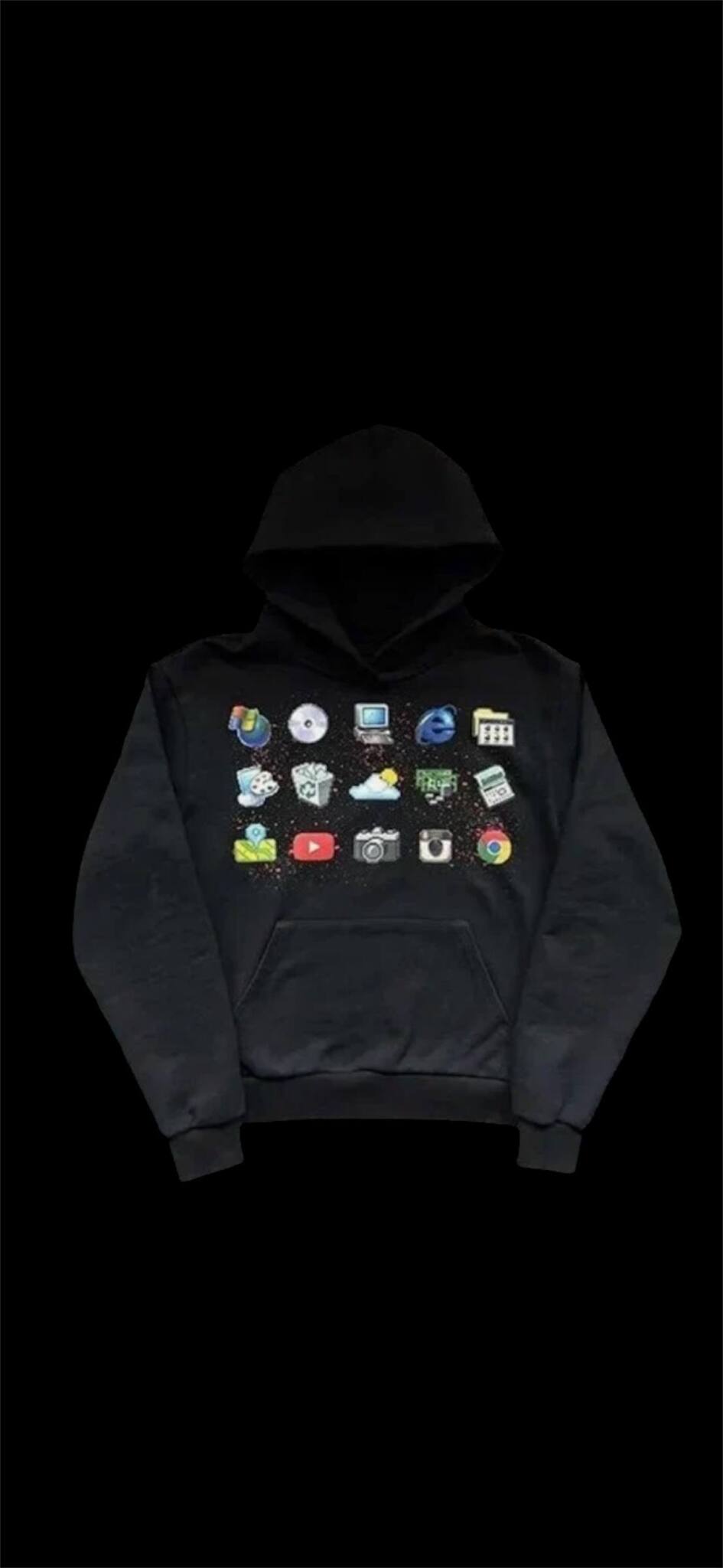 Эта худи - манифест цифровой эпохи. На ней собраны призраки приложений, которые определили наше время: от старых пиктограмм, которые вы больше не найдете на своем экране, до культовых логотипов, ставших иконами.