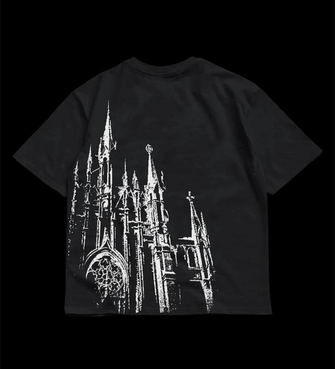Перед вами — та самая футболка, которая решает всё. Оверсайз крой для того ощущения свободы, когда одежда не сковывает, а обволакивает. А на нем — ваш личный манифест: готический собор, заряженный духом Affliction.